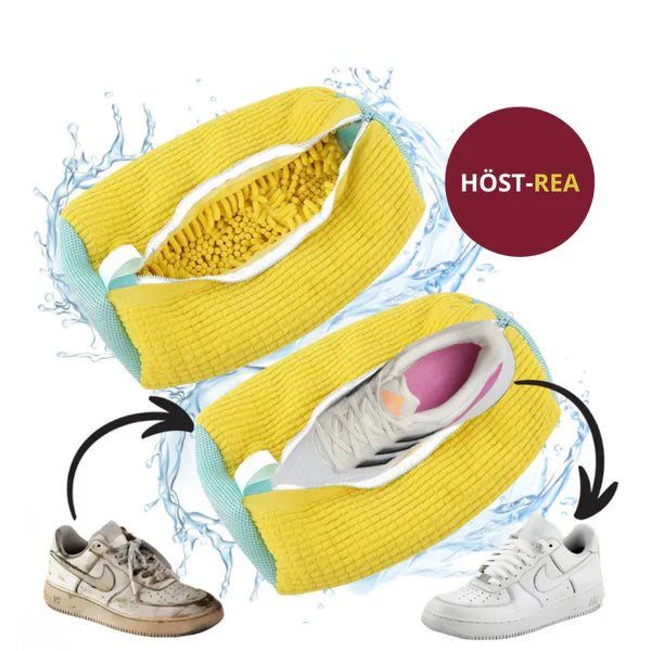 Svar 2: Ja, vesken er designet for å romme ulike skotyper, inkludert joggesko, hæler og støvletter, slik at de holder seg sikre og rene under vaskeprosessen.